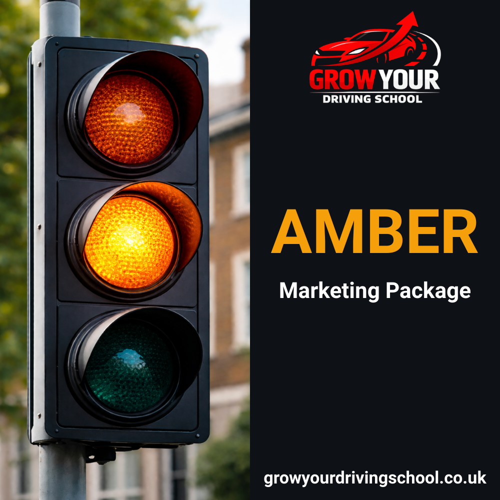 Stand out locally with the Amber Marketing Package. Includes a custom landing page website, Google & WhatsApp optimisation, and social media content to showcase your driving school.